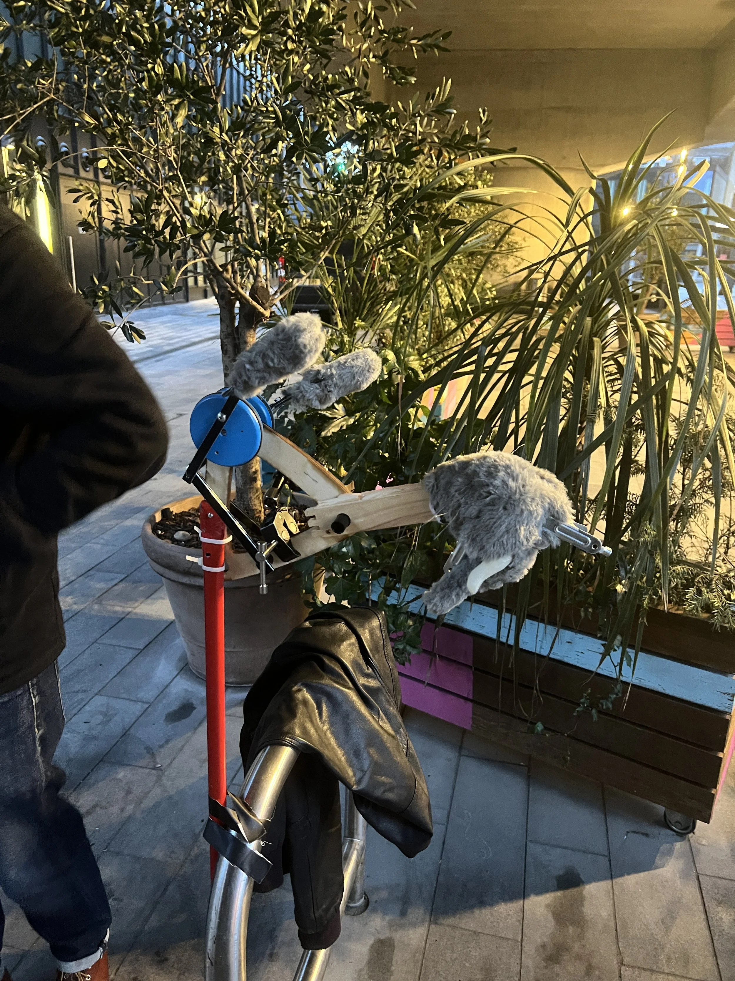 But as you can imagine, filming with a cat is harder than it seems. We ended up using two live cats, a stuffed cat, some fabricated paws attached to a broom handle, and a roller device.
